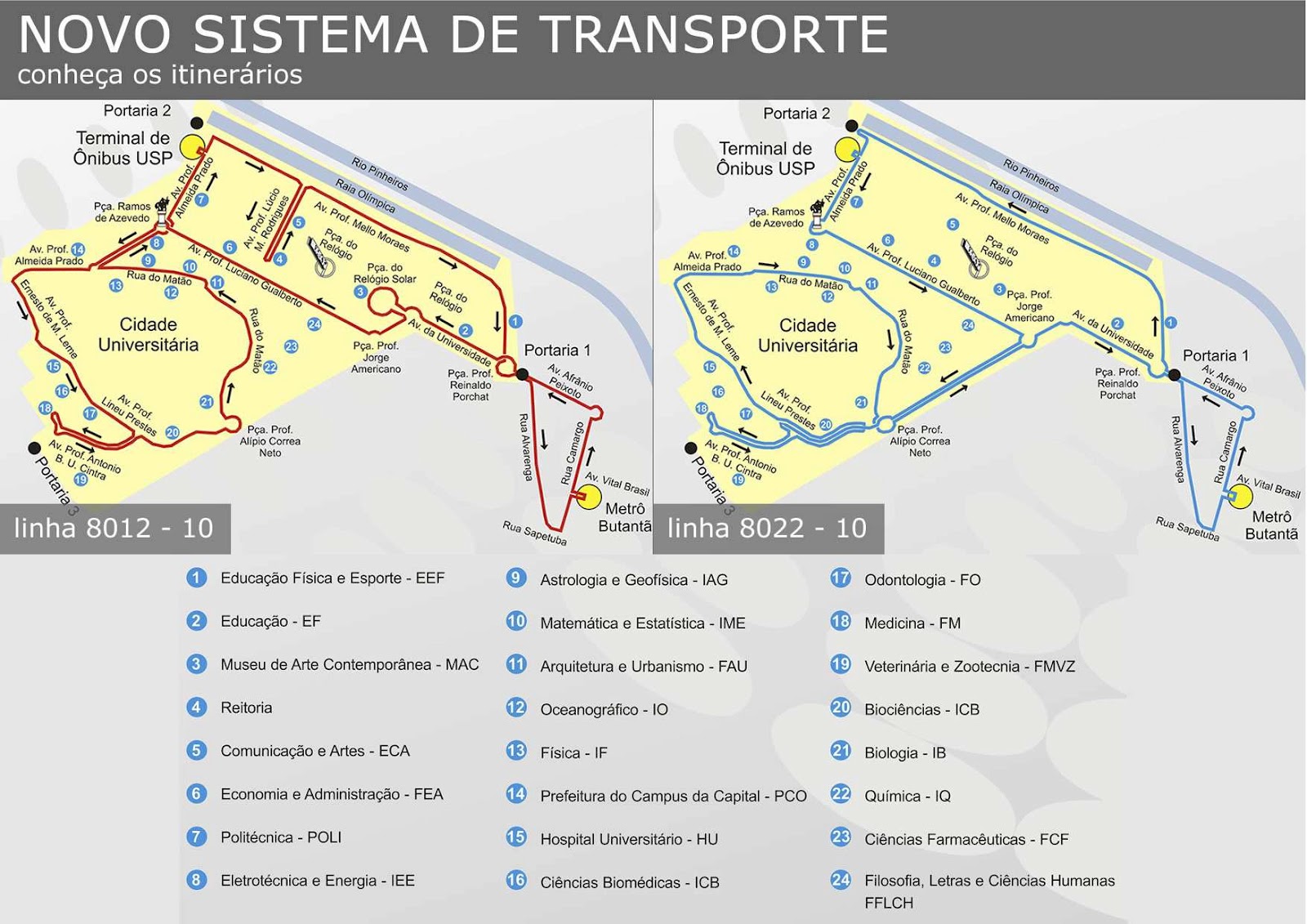 As linhas de ônibus 8012-10 e 8022-10 circulam pela cidade universitária durante o dia todo, inclusive nos finais de semana. Verifique o trajeto das linhas aqui.